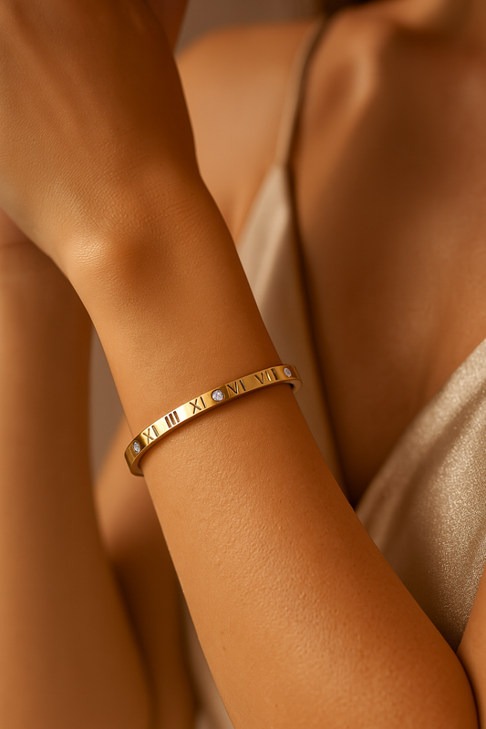 The Silver Twisted Roman Numeral Infinity Glitter Bangle