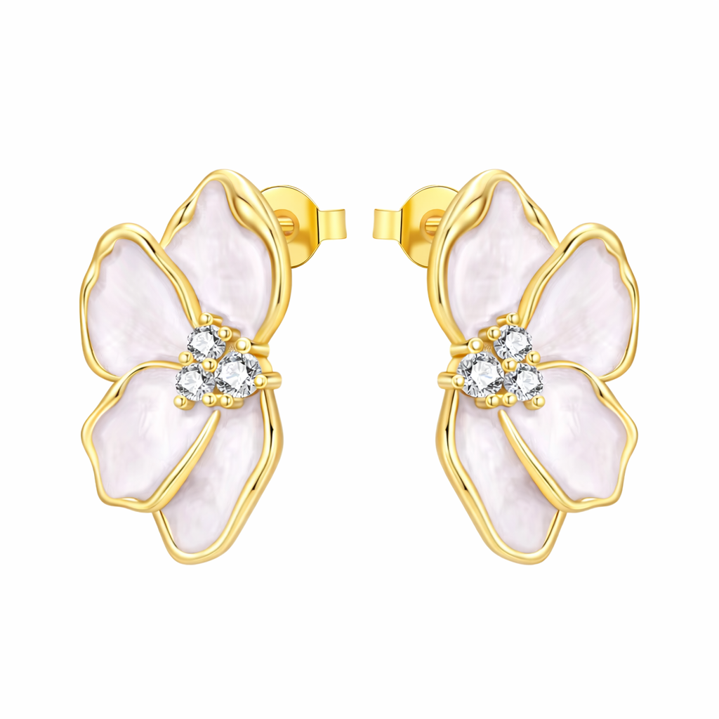 The Gold Pearly Pink Kalani Hawaii Bloom Studs